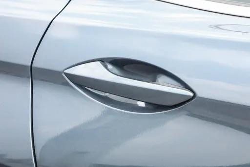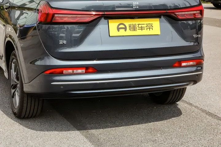 细节方面,车窗下沿采用银色镀铬饰条贯穿A柱至C柱,视觉上拉长了车身比例。后视镜集成转向灯,并支持电动折叠与加热。门把手采用传统机械式设计,相比隐藏式结构,可靠性更高,开合手感扎实。尾部设计延续了整体简约思路。贯穿式尾灯组与前脸呼应,点亮后层次清晰。灯带两端微微上翘,增加横向张力。尾门中央的“蓝电”字样镀铬标识提升了识别度。下方采用银色护板与隐藏式排气布局,视觉上更整洁。尾门支持电动开启与防夹功能,开启高度适中,即便身高160cm左右的女性用户也能轻松操作。整体尾部造型紧凑而不厚重,兼顾审美与实用。