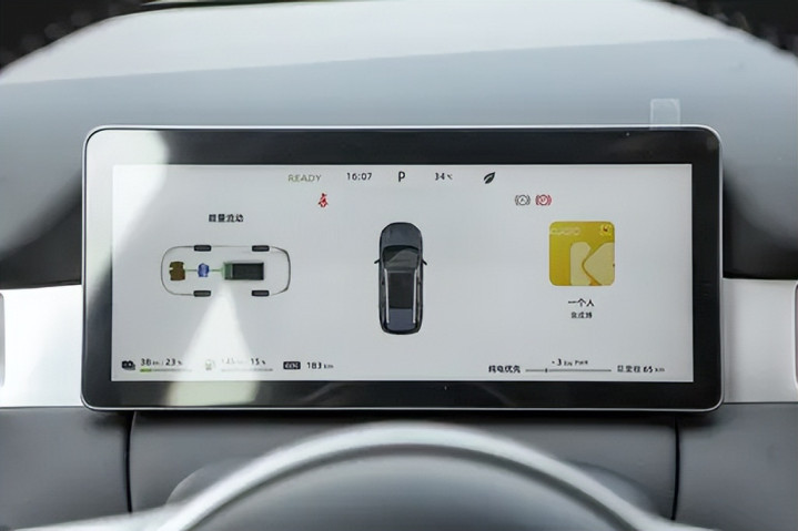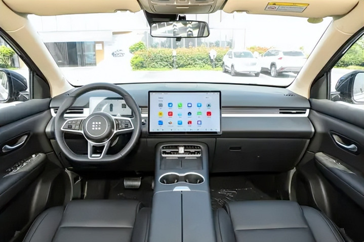 屏幕部分采用双屏设计,左侧为8.8英寸液晶仪表,显示风格简洁,可自定义主题。右侧15.6英寸悬浮中控屏是视觉中心,分辨率1080P,亮度高,触控响应流畅。车机系统搭载蓝电自研OS,UI设计直观,功能布局逻辑清晰,支持导航、语音控制、在线娱乐、车辆设置与OTA升级。